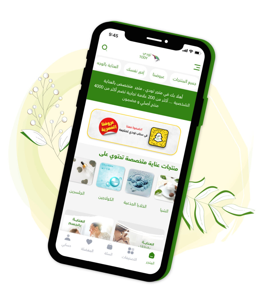 حرصاً منا على تقديم أفضل تجربة، نقدم لكم تطبيق تودي للعناية الشخصية المتخصصة تم تطوير التطبيق ليجعل تجربتكم أسهل وأمتع ، فعل التنبيهات ليصلك كل العروض الاسبوعية والشهرية
